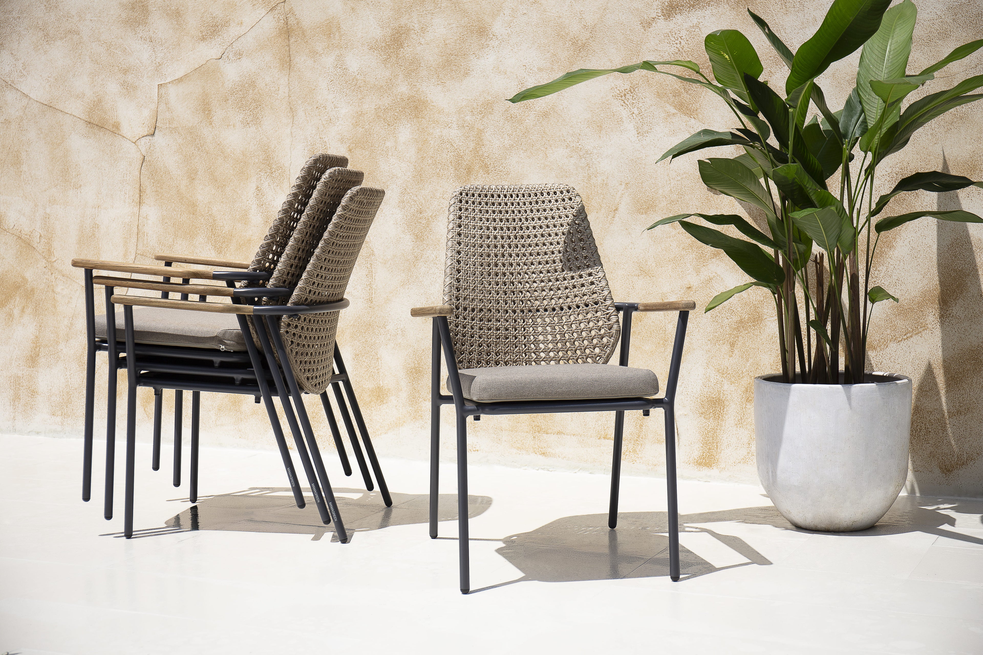 DAISY Dining Table Rectangular 86", Aluminum Anthracite, Recycled Teak Brushed Teak Shield, HPL Slate, Recycled Teak Laminated Brushed Teak Shield