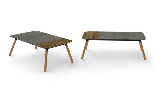 HACIENDA Small Coffee Table (HPL) Plantation Teak Smooth Sanded Teak Shield, HPL Scratched Grey
