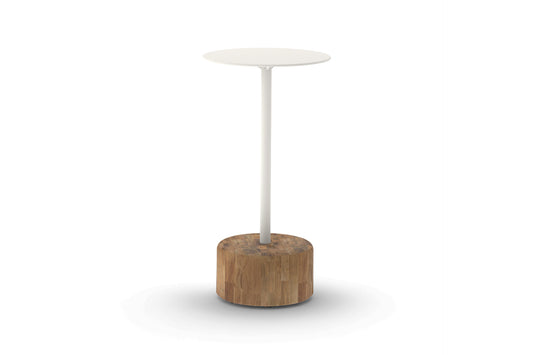 DAISY Side Table, Aluminum White, Recycled Teak Brushed Teak Shield, HPL Alpes White, Recycled Teak Laminated Brushed Teak Shield