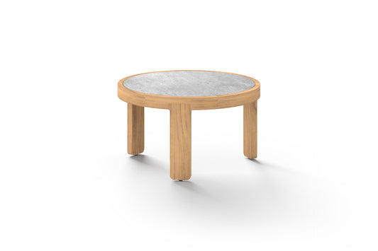 GLYPH Low Table Dia 16" - Ultra Durable, Laminated - Smooth Sanded Teak Shield, Aluminum Cotton