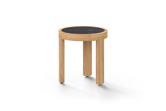 HACIENDA Side Table Plantation Teak Smooth Sanded Teak Shield, HPL Cararra Black