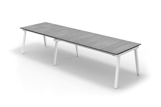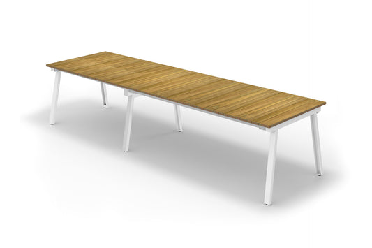 DAISY Rectangular Coffee Table, Aluminum White, Recycled Teak Brushed Teak Shield, HPL Alpes White, Recycled Teak Laminated Brushed Teak Shield