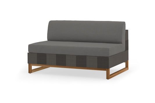 EKKA Sectional Seat, Plantation Teak Smooth Sanded, Batyline Dark Taupe, Cushion Sunbrella Sailcloth Seagull Grey