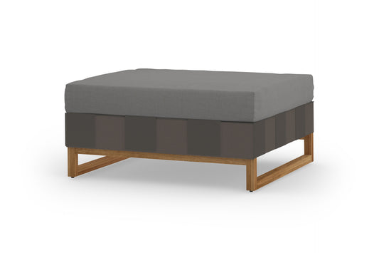 EKKA Ottoman, Plantation Teak Smooth Sanded, Batyline Dark Taupe, Cushion Sunbrella Sailcloth Seagull Grey
