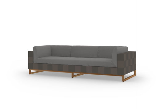 EKKA Sofa 3-Seater, Plantation Teak Smooth Sanded, Batyline Dark Taupe, Cushion Sunbrella Sailcloth Seagull Grey