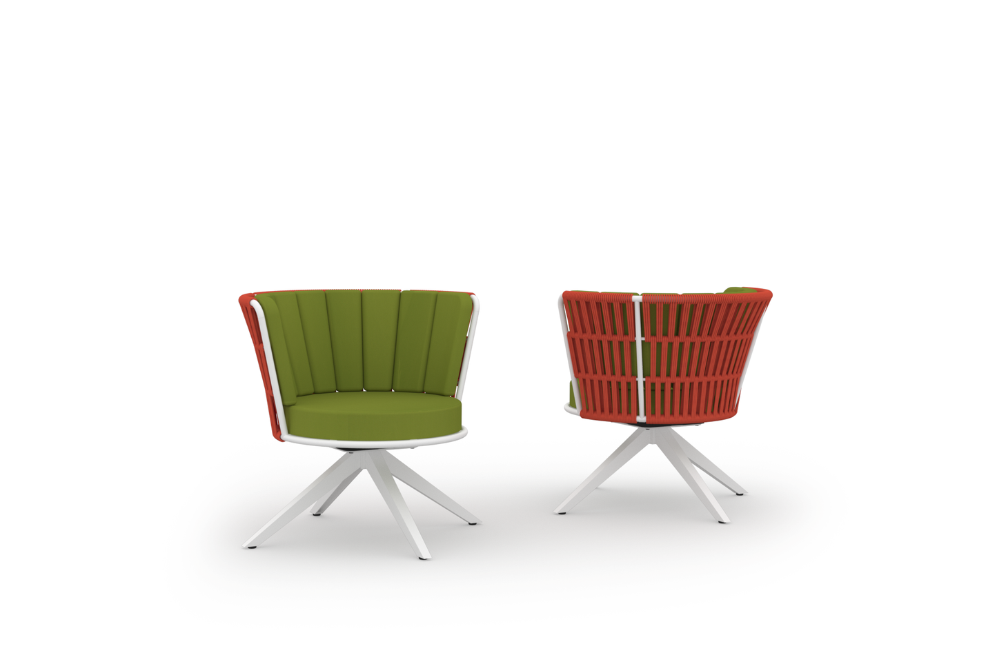 DAISY RAE Swivel Lounge Chair - Frame PCA white, Rope Coral, Cushion Sunbrella Macaw